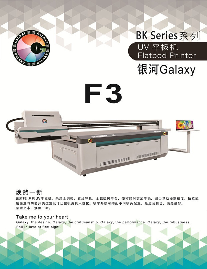 銀河F3系列UV平板機,采用全鋼架、直線導軌、全鋁吸風平臺,使打印時更加平穩(wěn),減少晃動提高精度。抽拉式廢墨盒與功能開關位置設計讓整機更具人性化。噴車升級可搭配不同噴頭配置,最適合自己,便是最好。 榮耀上市,煥然一新。